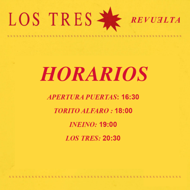De ese modo, el concierto de Los Tres iniciará a las 20.30 horas.