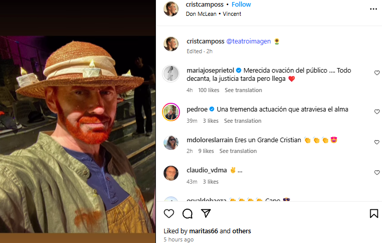 En su regreso a los escenarios también estuvo Fotech.cl, quienes consignaron que tras finalizar la obra, Cristián Campos recibió una gran ovación del público y de sus compañeros de elenco.