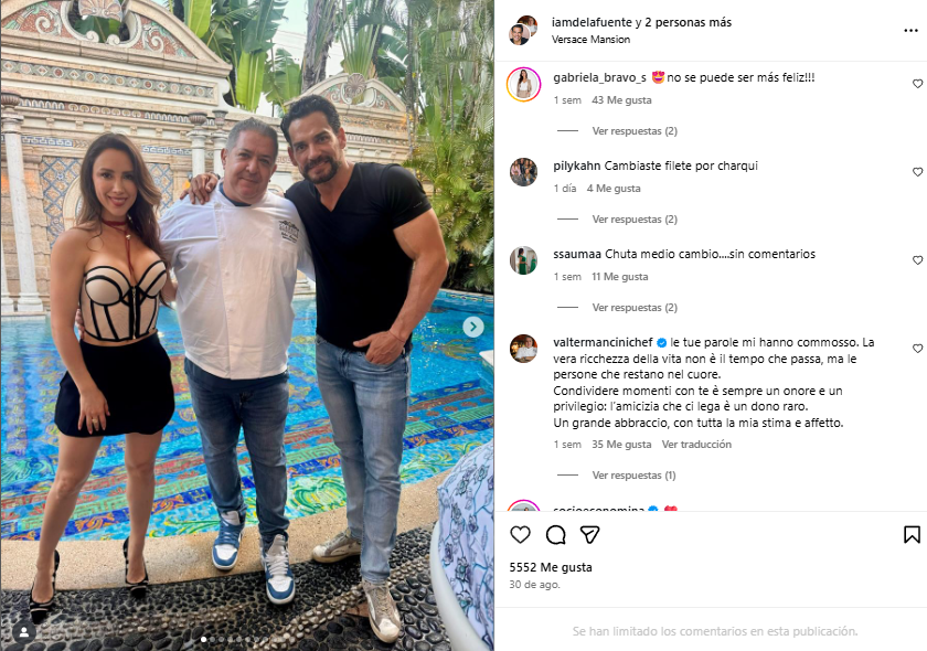 Durante su programa Ellos, de Radio Agricultura, el actor relató que, a finales de agosto, publicó la imagen en el restaurante de un amigo, en la mansión Versace de Miami.