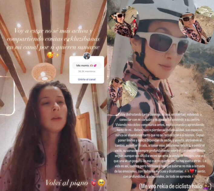 “Su corazón siempre profundamente sabrá el camino por donde seguir, aunque sea difícil a veces sacarse la venda de los ojos, una vez que una ve un poquito de eso que no quería ver, no hay vuelta atrás…”, reflexionó junto a un video andando en bicicleta.