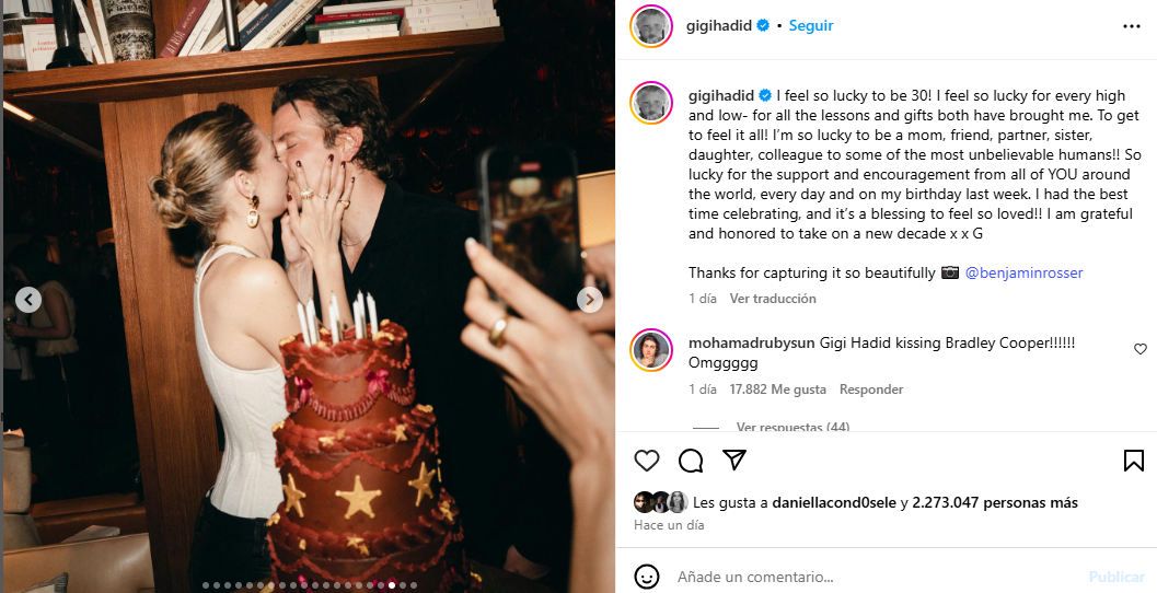 Por último, Gigi Hadid postuló: “¡Me lo pasé de lo mejor celebrando, y es una bendición sentirme tan querida! Estoy agradecida y honrada de tomar una nueva década“.