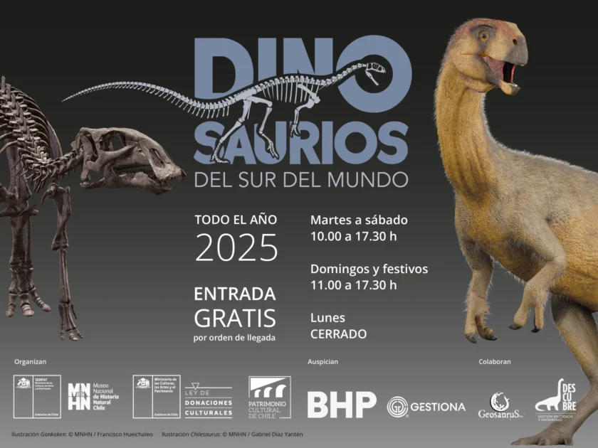 Según informó el Gobierno mediante su página web, en el Museo Nacional de Historia Natural (MNHN) se lleva a cabo la exposición gratuita Dinosaurios del sur del mundo.