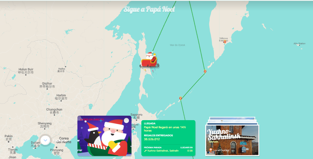 Esta plataforma interactiva, creada por Google, permite conocer en tiempo real el recorrido de Papá Noel, mientras entrega regalos por todo el mundo.