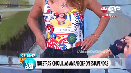 Este viernes, la ganadora del Copihue de Oro se atrevió a animar Bienvenidos con una prenda poco común, la cual causó risa entre los panelistas del programa.