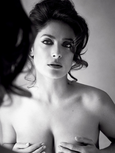 La talentosa y estupenda actriz mexicana, Salma Hayek, a sus 48 años posó desnuda para la portada de la revista Allure sin ningún pudor.