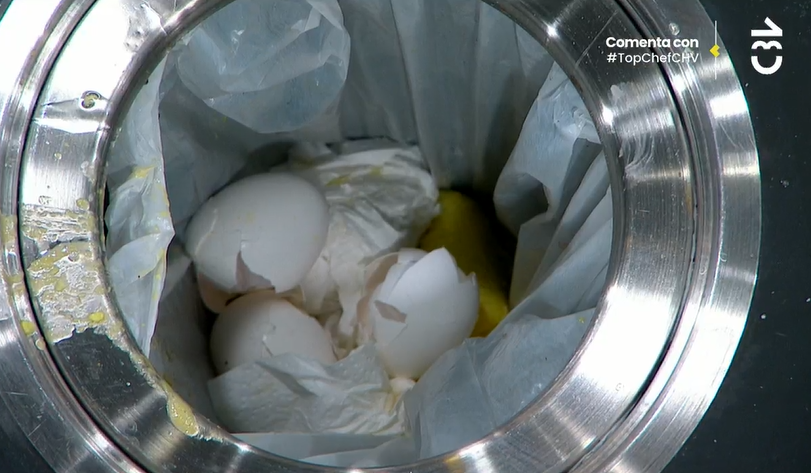 Tal como se vio en la imagen, el omelette de Belén cayó del sartén directo a la basura, que estaba con la tapa abierta, por lo que toda la preparación se perdió.