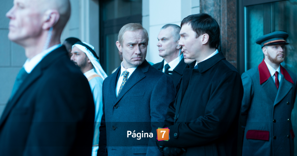 El primer avance de El mago del Kremblin, que fue compartido por Deadline, muestra a Baranov reunido con el que parece ser el responsable de un programa satírico, observando que en él se ridiculiza a Putin, algo inadmisible.