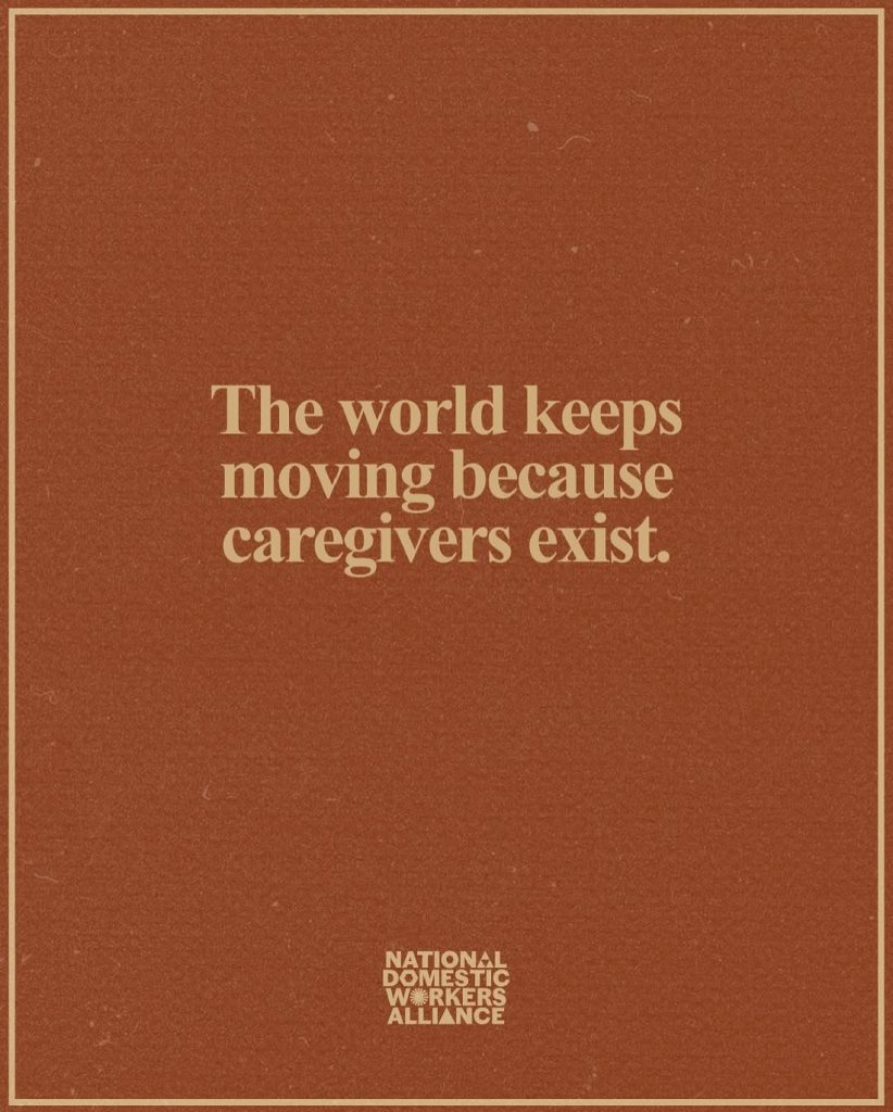 Dicha frase pertenece originalmente a la cuenta de Instagram de la Alianza Nacional de Trabajadores del Hogar, conocida en redes como Domestic Workers (@domesticworkers), una organización que promueve la visibilización del trabajo de quienes brindan apoyo y atención en el ámbito doméstico.