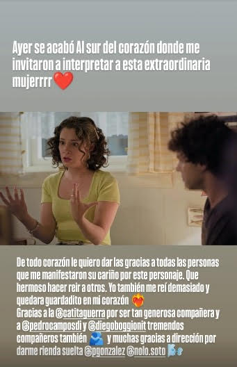 “Ayer se acabó Al Sur del Corazón donde me invitaron a interpretar a esta extraordinaria mujer “, comentó la artista, en una reciente publicación de Instagram .