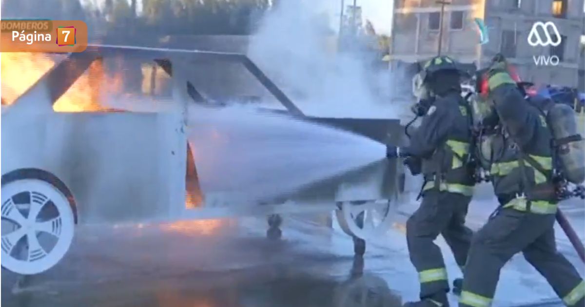 El primer ejercicio que tuvo que hacer junto a un instructor fue apagar el fuego de un auto.