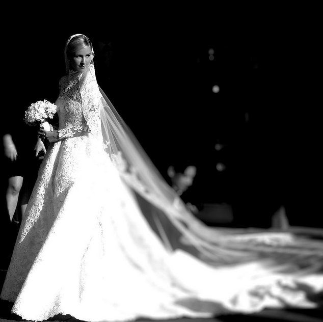 Entre tanto glamour, el vestido de la novia no podía no ser objeto de alabanzas, pues Nicky escogió a la firma Valentino Haute Couture, para que la diseñara un traje exclusivo para ella.