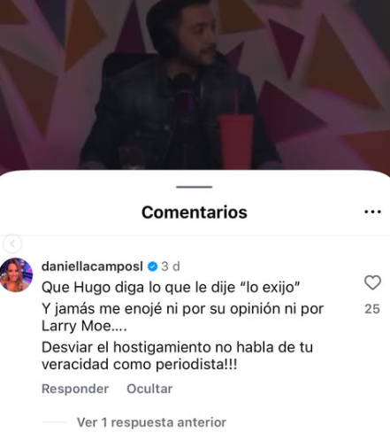 Estos dichos de Hugo Valencia no tardaron en llegar a oídos de la aludida, Daniella Campos, quien en las redes sociales de Todo Se Sabe reaccionó.