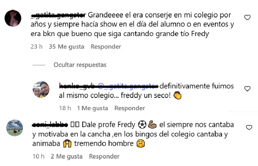 En redes sociales, muchos exalumnos reconocieron a Fredy como el conserje de un colegio, que siempre estaba dispuesto a cantar en actos escolares.