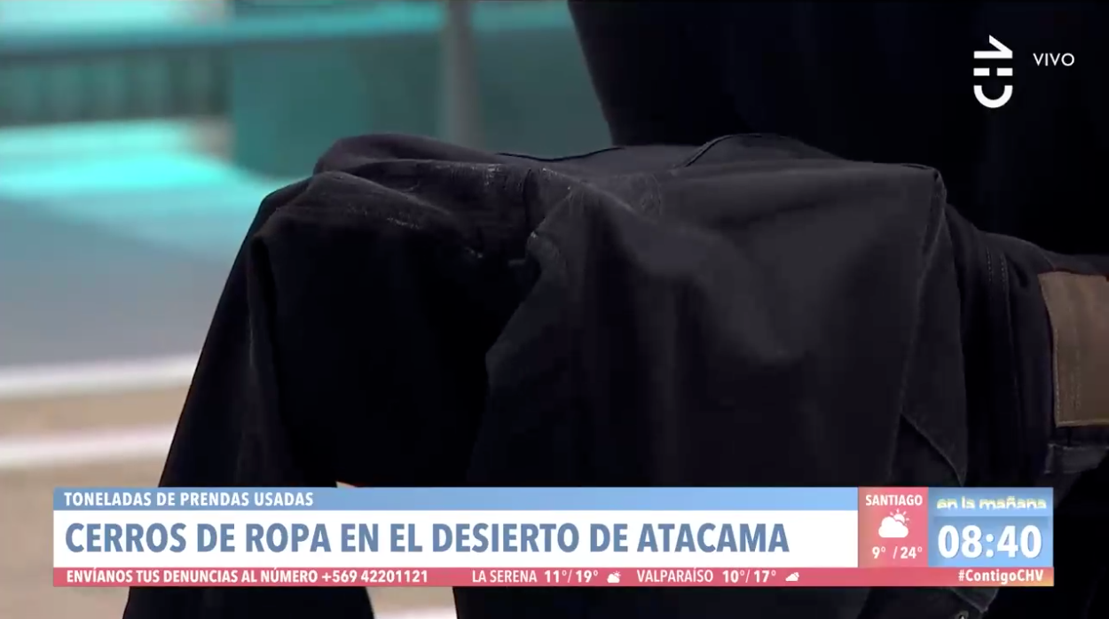 Julio César Rodríguez mostró dos prendas de vestir en el matinal Contigo en la mañana de CHV, cuando se encontraban comentando los looks de los jugadores de la ‘Roja’ y como introducción para hablar de los cerros de ropa en el desierto de Atacama.
