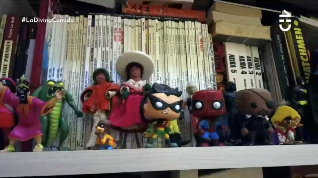 “Es como la casa del cómic”, explicó para seguidamente mostrar una habitación llena de figuritas de acción, historietas y ñoñerías.