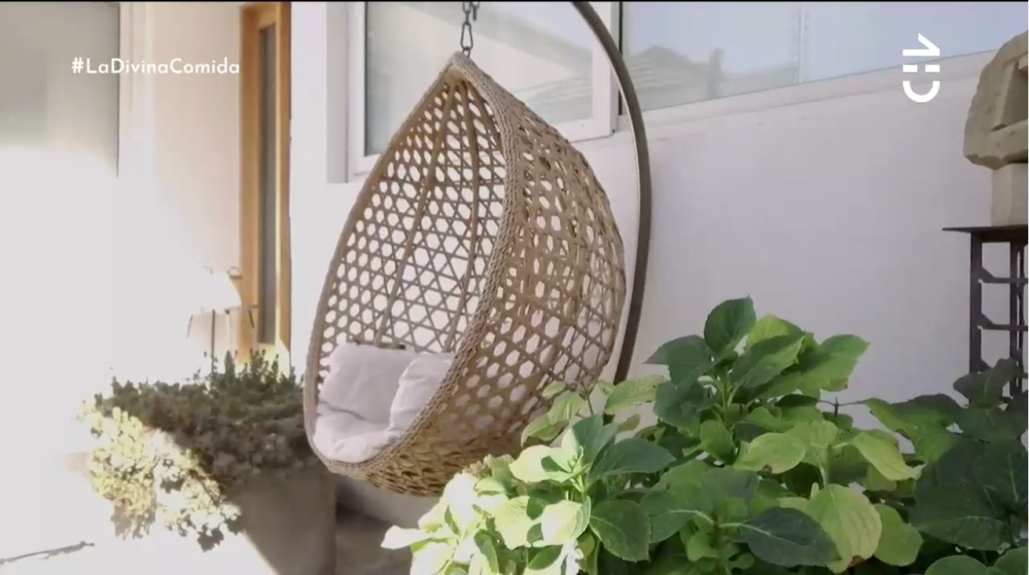 Finalmente, dirigió a las cámaras de televisión a su rincón favorito, una silla colgante en el jardín que ocupa para leer o como un espacio para distraerse.