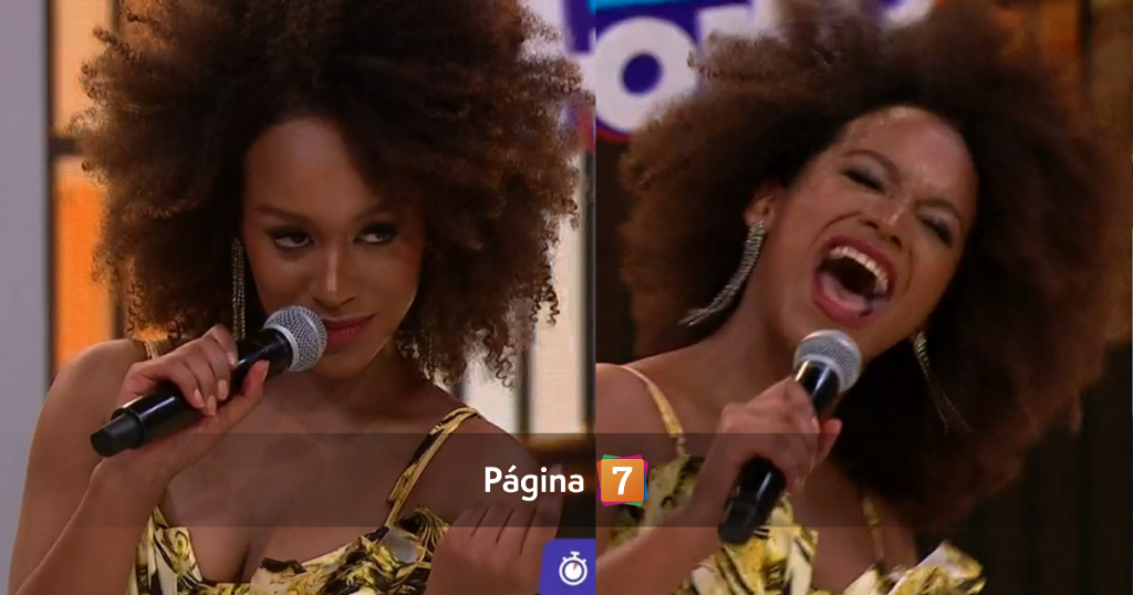 “Canta canciones muy bonitas, se lo digo a mi público. De la comuna de Independencia, aquí está: la tremenda Thaiz Torres”, la presentó Julián Elfenbein, conductor del espacio televisivo.