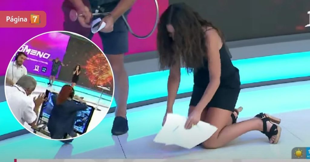 Lo anterior provocó que muchos papeles salieran volando y que la animadora se agachara a recogerlos.