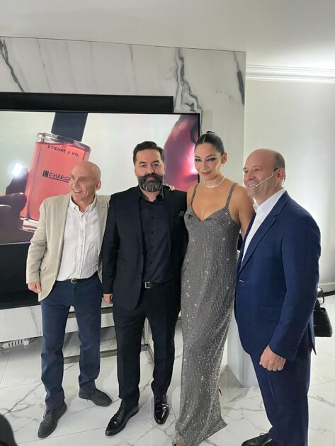 La noche de este miércoles, Kel Calderón llevó a cabo el lanzamiento de su nueva colección ETIENNE X KEL , cuyo protagonista de la campaña publicitaria es el perro de su fallecido amigo Claudio Iturra .