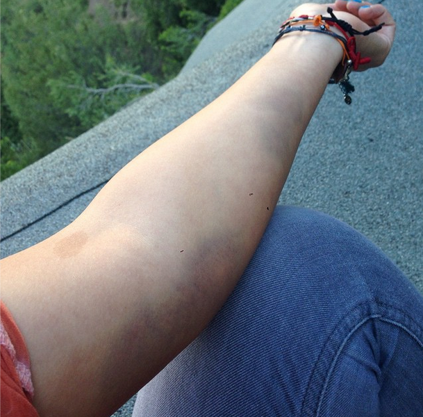 “El resultado de mi primer día practicando con el arco”, fue el mensaje que acompañó la estática que tuvo muchos comentarios con consejos para que se tratara ese moretón.
