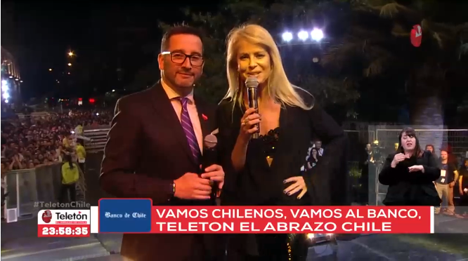 La primera participación de la ex Miss Universo fue desde la Plaza de Armas de Santiago, acompañada de Eduardo Fuentes, y animando al público en este nuevo escenario que sumó el show.
