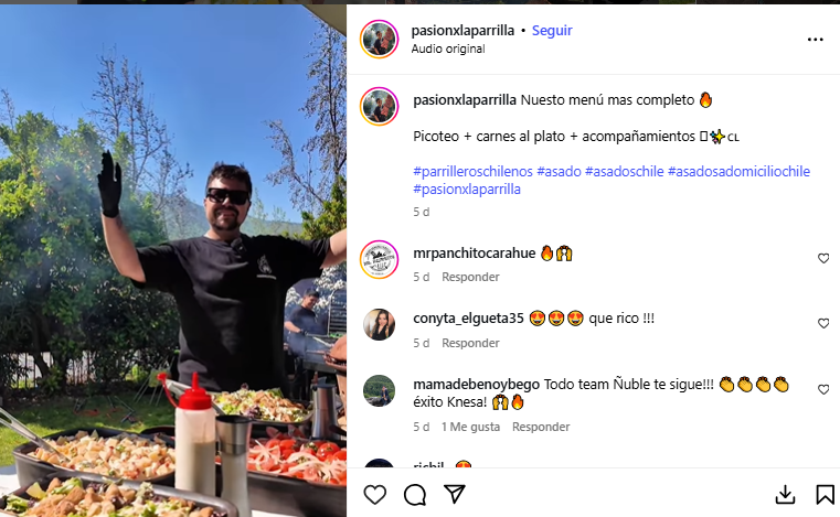 Pero ese mundo de cámaras y luces lo atrapó solo parcialmente. Hoy, su pasión lo lleva a otro tipo de escenario: brasas, cortes de carne y eventos al calor de la parrilla.