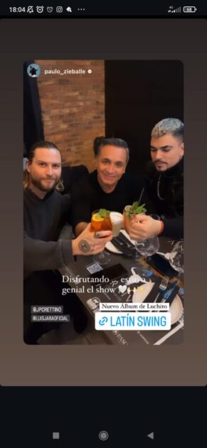 Zieballe también compartió una historia de los tres brindando en un bar, en contexto de celebrar Latin Swing, el último álbum de Luis.