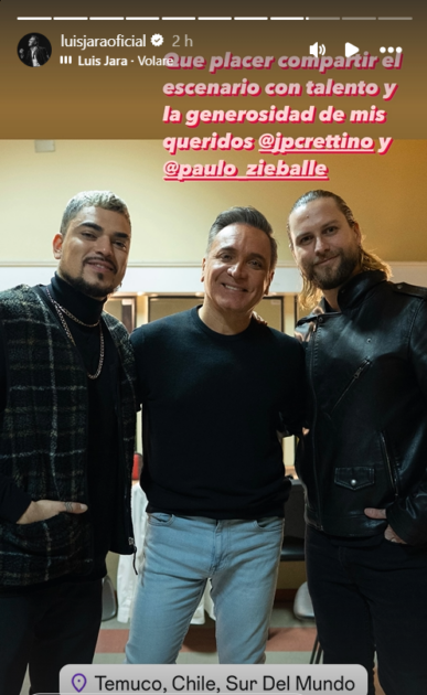 “¡Qué placer compartir el escenario con el talento y la generosidad de mis queridos Jean-Philippe y Paulo Zieballe! “, escribió Jara en la imagen que aparece con ambos artistas.