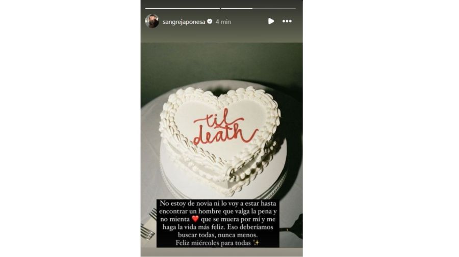 La actriz publicó en sus historias de Instagram un contundente mensaje junto con la foto de una torta con la frase “hasta la muerte” en inglés.