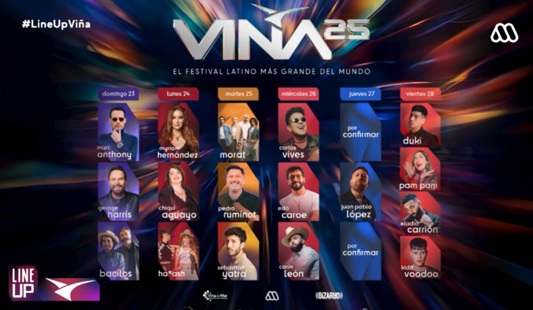 Asimismo, al Festival de Viña 2025 también se sumaron los shows de la banda Morat , el mexicano Carín León , el puertorriqueño Eladio Carrión y finalmente el chileno Kidd Vodoo.