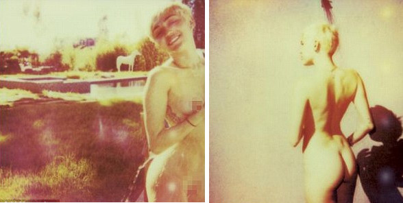 Las estáticas muestran a una “hippie” Miley a un estilo de los años 60, mientras posa desnuda en el jardín de su casa en Los Ángeles, en una tina desnuda y solo cubierta por espuma, o sentada en la cama enseñanado sus senos.