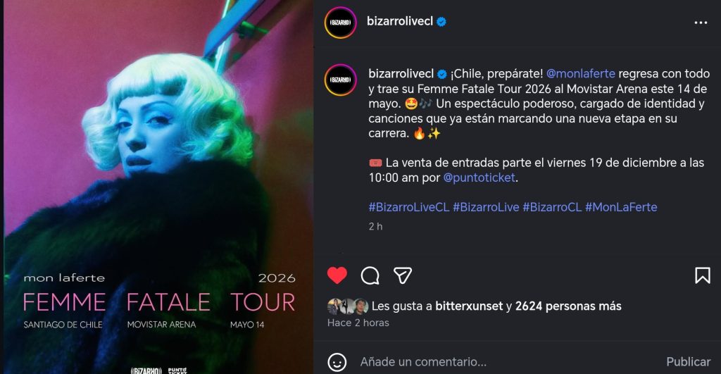 “Un espectáculo poderoso, cargado de identidad y canciones que ya están marcando una nueva etapa en su carrera”, anunció la productora Bizarro, prometiendo un show que destacará por la intensidad propia de la cantante viñamarina.