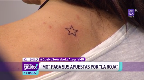 Otra que también se arriesgó fue la conductora de noticias del canal, Macarena Edwards, quien tuvo que tatuarse. El diseño escogido fue una estrella, y cabe señalar que la periodista estaba sumamente nerviosa.