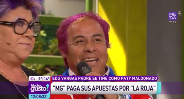 Durante las semanas de la Copa América, el matinal entabló contacto con varios familiares de los seleccionados nacionales, y uno de ellos fue el papá de Eduardo Vargas, quien apostó por teñirse el pelo del mismo color que Patricia Maldonado, y hoy llegó hasta los estudios de Mega para cumplir el desafío.
