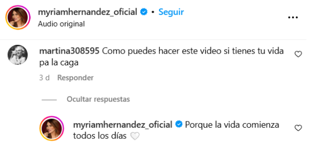 Sin embargo, dentro de todos los mensajes, Myriam Hernández también recibió críticas y opiniones desubicadas.