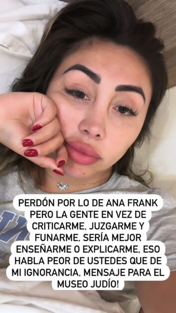 “Perdón por lo de Ana Frank, pero la gente, en vez de criticarme, juzgarme y funarme, sería mejor enseñarme o explicarme”, señaló.