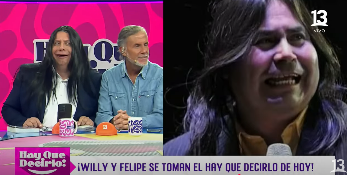 “¡Aplausos para Pamelo!”, expresó Felipe Vidal, mientras que Willy imitó el clásico movimiento de cabeza y cabello de la conductora de Canal 13.