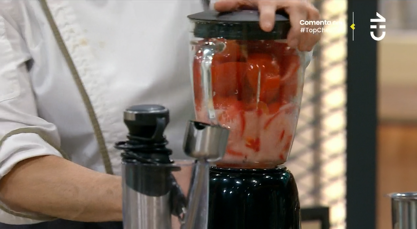 Claro que para ganar tiempo, Berta Lasala echó tomates a una licuadora, para hacer una salsa de forma más rápida.