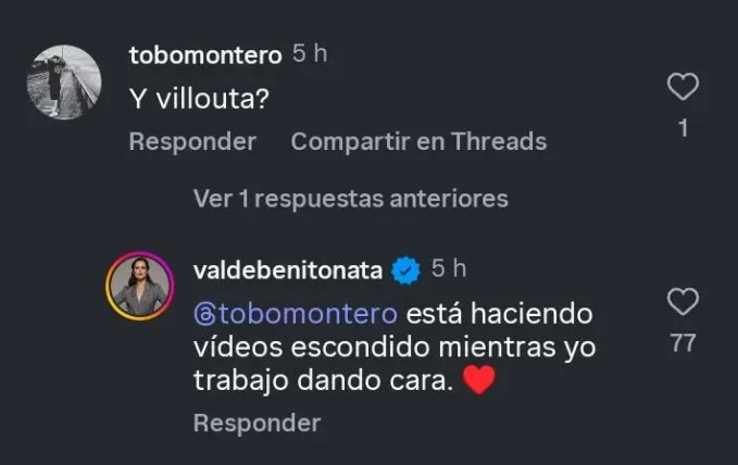 En dicha publicación, un usuario le preguntó por su examigo Villouta, y ella respondió tajante: “Está haciendo videos escondido, mientras yo trabajo dando cara”.