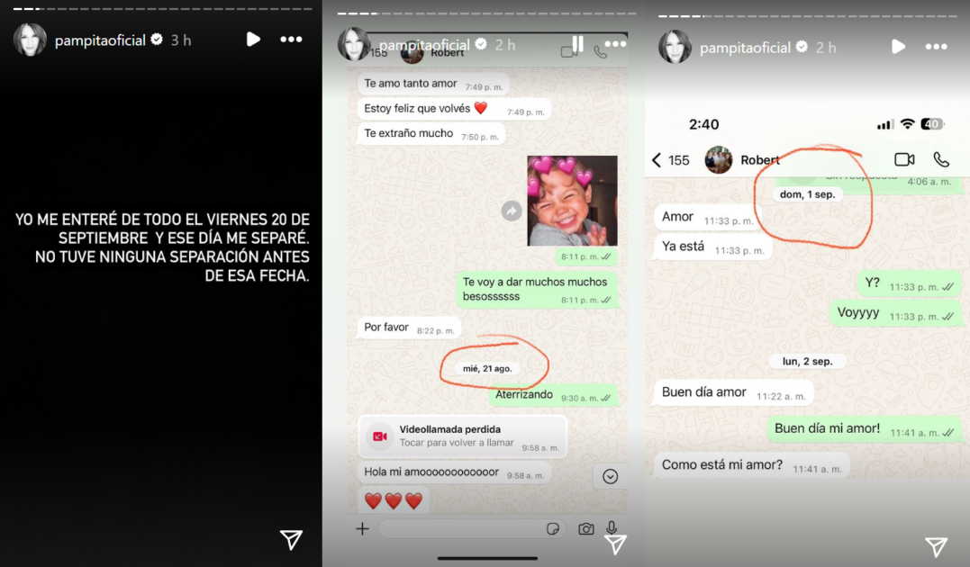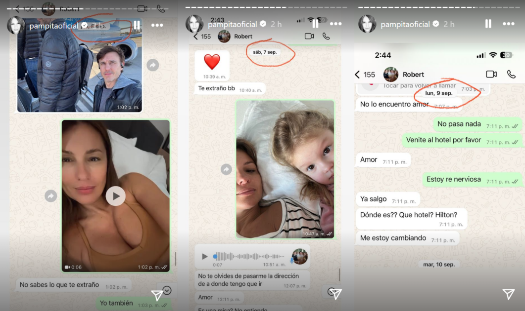 Más de una veintena de conversaciones con Roberto García Moritán dejó al descubierto Pampita, luego que su expareja confirmara el quiebre de la relación.