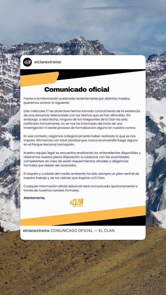 Mediante un comunicado, Pangal Andrade y el equipo de El Clan, respondieron al anuncio de formalización por parte de Fiscalía luego de una denuncia de Conaf.
