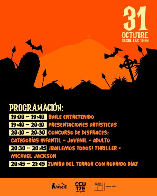 En tanto, quienes prefieran un ambiente más activo podrán asistir a la “Zumba del Terror” con el bailarín Rodrigo Díaz en Renca, una actividad al aire libre donde el baile, la música y los disfraces se combinan en una experiencia llena de energía y color.