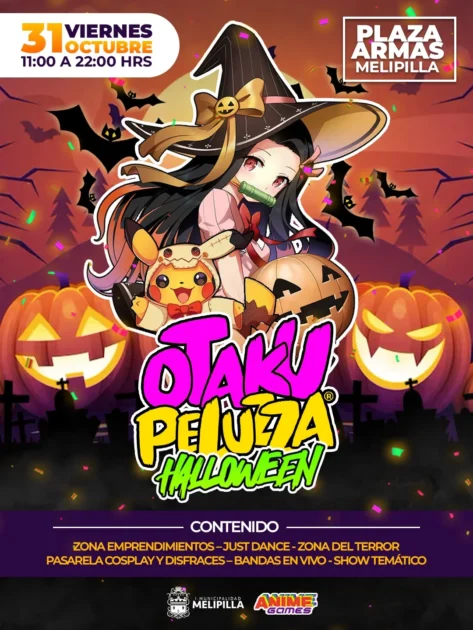 En Melipilla, el evento Otaku Peluza Halloween reunirá a la comunidad friki con concursos de cosplay, feria de artistas y zona gamer.