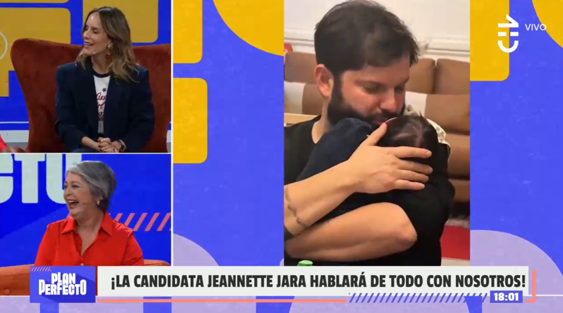 En la pantalla del programa, se proyectaron imágenes de la visita que Jeannette le hizo al Mandatario tras el nacimiento de Violeta.