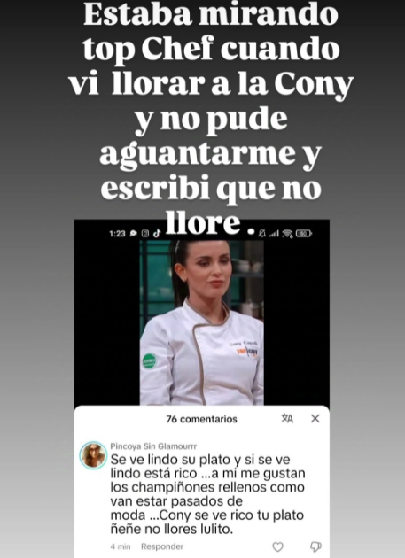 “Estaba mirando Top Chef cuando vi llorar a la Cony y no pude aguantarme y escribí que no llore“, escribió Pincoya en Instagram.