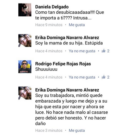 “Que hermosa pareja, los felicito. Sólo espero que no te olvides que en un mes nace tu hija. ¡Ojalá le seas tan fiel a tu hija como se supone le serás a tu nueva esposa!”, escribió Erika Navarro en la publicación.