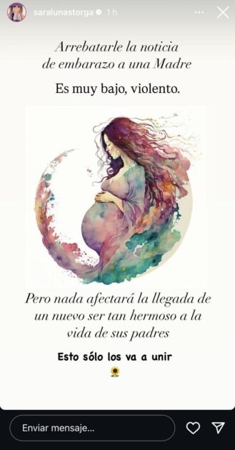 “Arrebatarle la noticia de embarazo a una madre, es muy bajo, violento. Pero nada afectará la llegada de un nuevo ser tan hermoso a la vida de sus padres. Esto sólo los va a unir”, escribió a inicios de esta semana.
