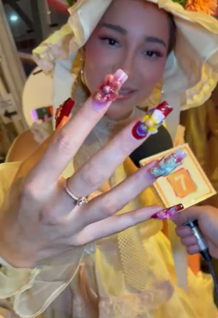 “Mis uñas, que también son de flores, fue un trabajo cuático. Seis horas de trabajo de Cami Pretty Nails”, destacó la cantante nacional.