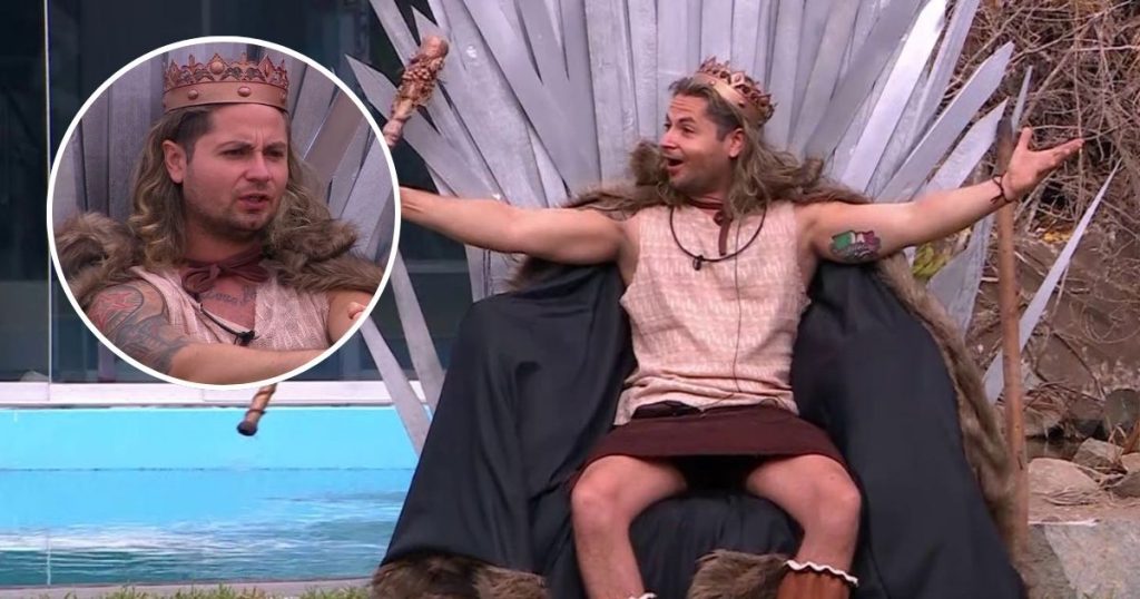 En el capítulo de este lunes, apareció sorpresivamente en el patio un trono al estilo de ‘Game of Thrones’. Sin dudarlo, el influencer se sentó y se puso la corona.