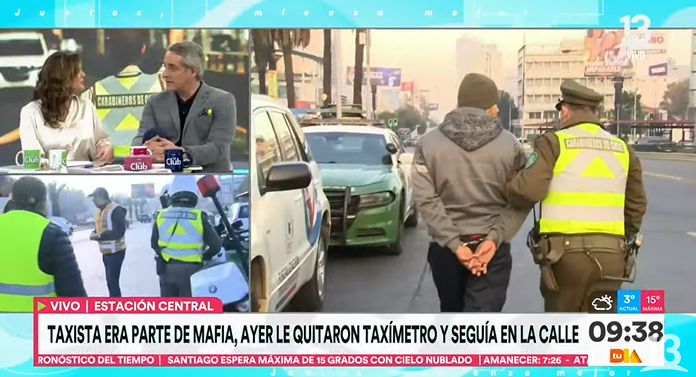 Todo ocurrió en el matinal Tu Día de Canal 13, cuando reportaban una fiscalización a taxis colectivos, en el exterior del Terminal Sur de la Alameda.